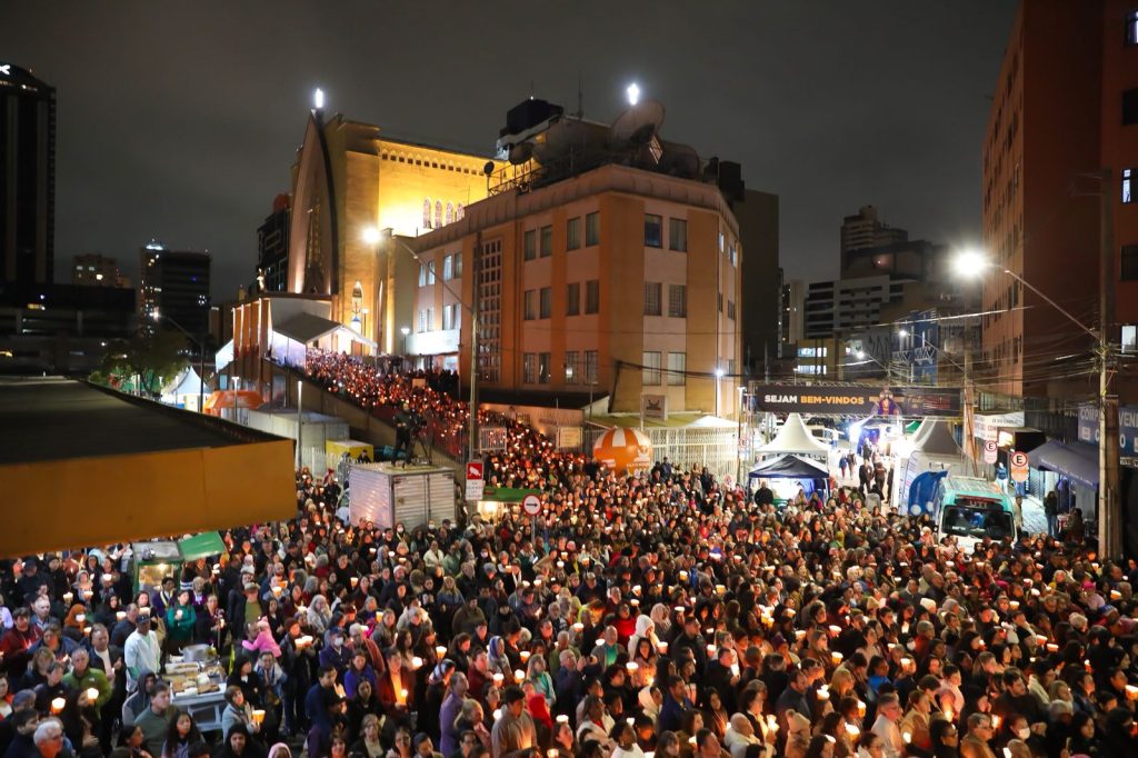 A devota participou da procissão, que também contou com a presença de milhares de fiéis. Conduzidos por Padre Manzotti, percorreram as ruas do Centro de Curitiba (PR). O Sacerdote relembrou os 20 anos da Associação Evangelizar É Preciso e pediu que as pessoas rezem pela missão da Instituição, como um presente. Ao iniciar a caminhada, entre orações e músicas, ele convidou a todos que dissessem alto seus pedidos, para que a noite fosse de mudança, de transformações e de graças atendidas.